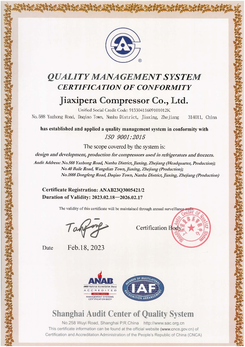 面向未來,公司以“智能壓縮機產業園區”建設為引擎,突進公司創業創新孵化大平臺建設;以海外布局研發制造基地為突破口,提升國際化綜合能力,奮力譜寫加西貝拉高質量發展新篇章。